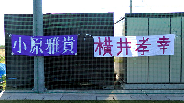元パルセイロの小原選手・横井選手は今シーズン上田ジェンシャンから加入。横断幕も受け継いだとのこと。